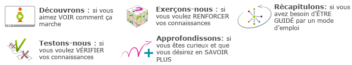Comme pour le module 1, à vous de choisir par où commencer et dans quel ordre continuer. Vous n'êtes pas obligé de tout parcourir !